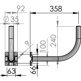 Soporte pared en U ø 35 mm para antenas 60,65 y 80
